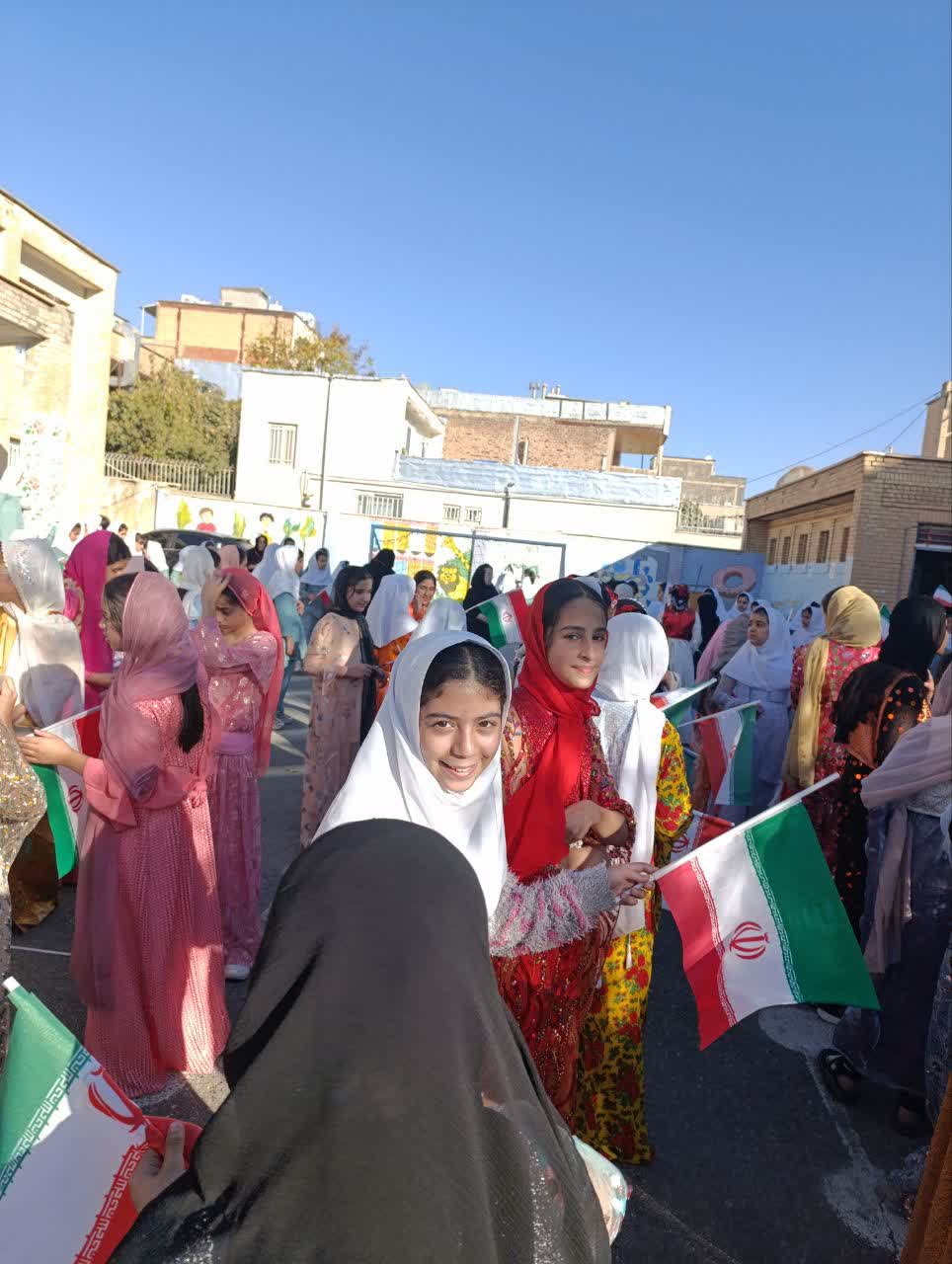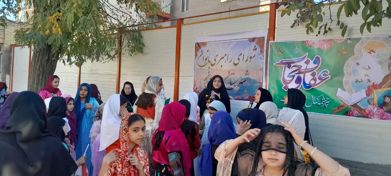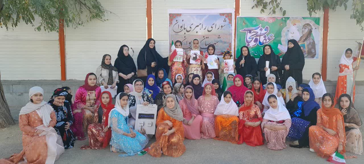 در این مراسم، نمادهایی مرتبط با عفاف و حجاب و همچنین شورای راهبری بانوان نصب گردید. دانشآموزان با پوشش محلی در پویشی حضور داشتند که طی آن بر روی پرچمهای آمریکا و اسرائیل قدم میگذاشتند و در زیر پرچم ایران شعارهایی سر میدادند.