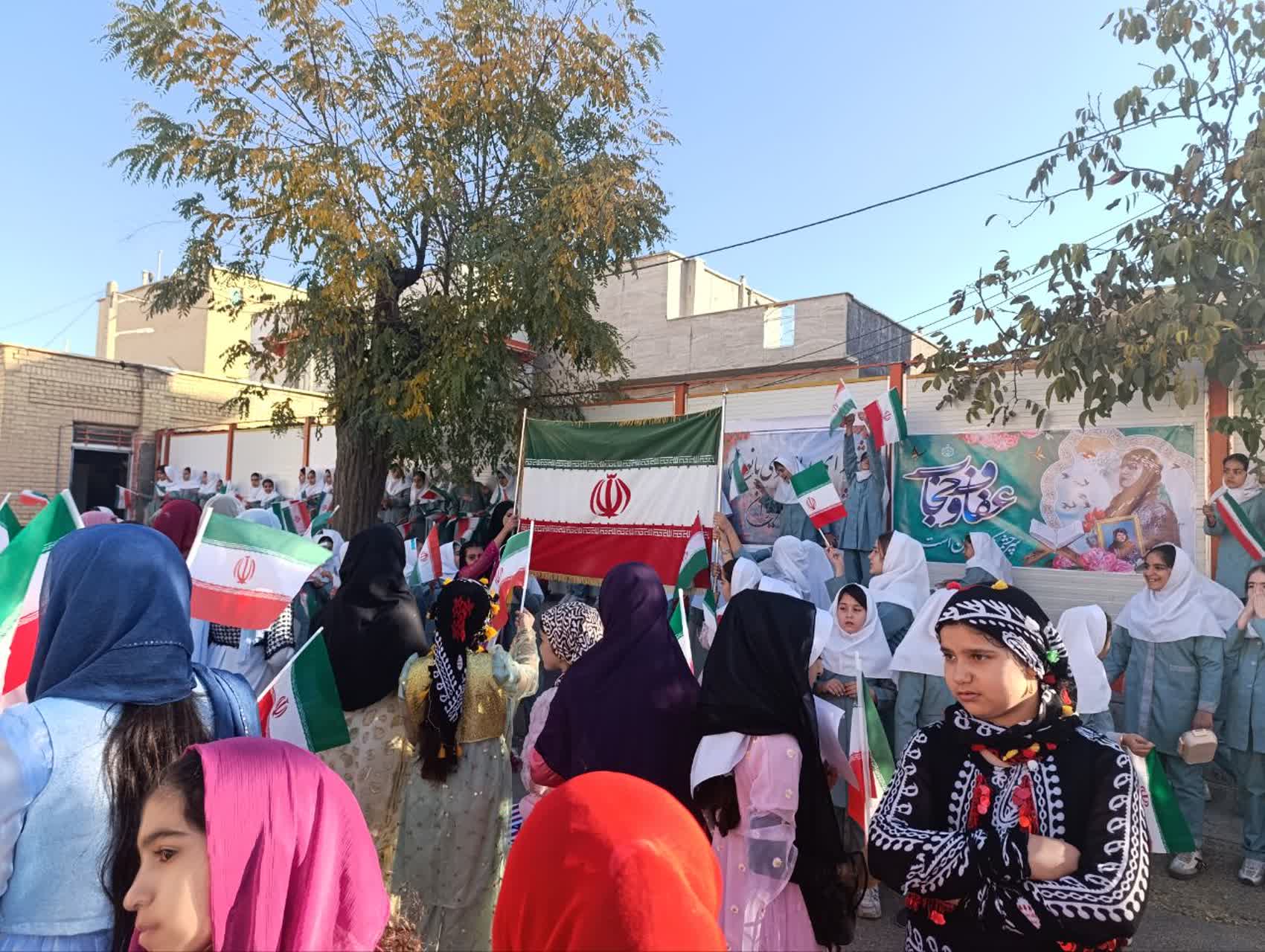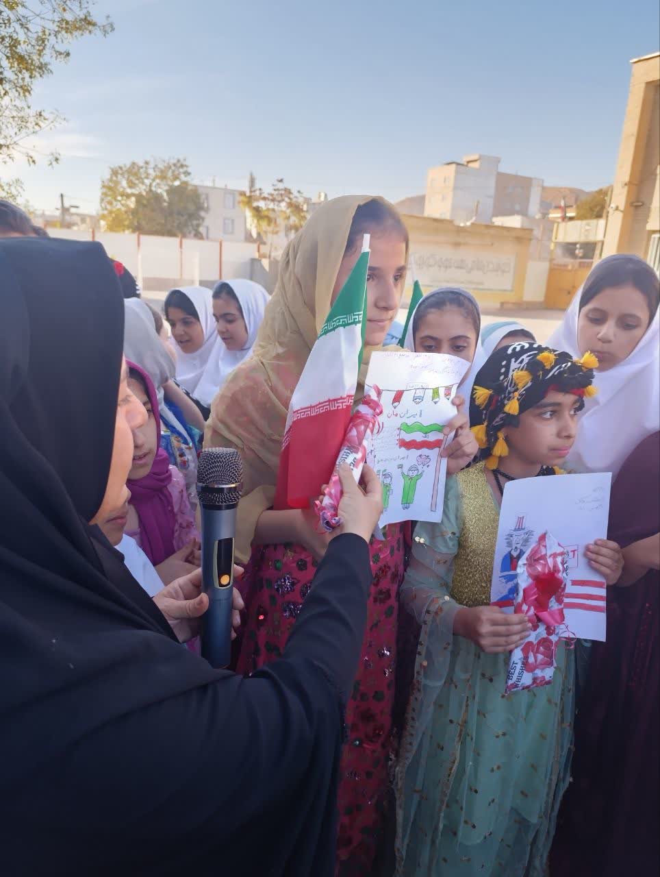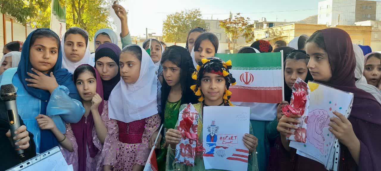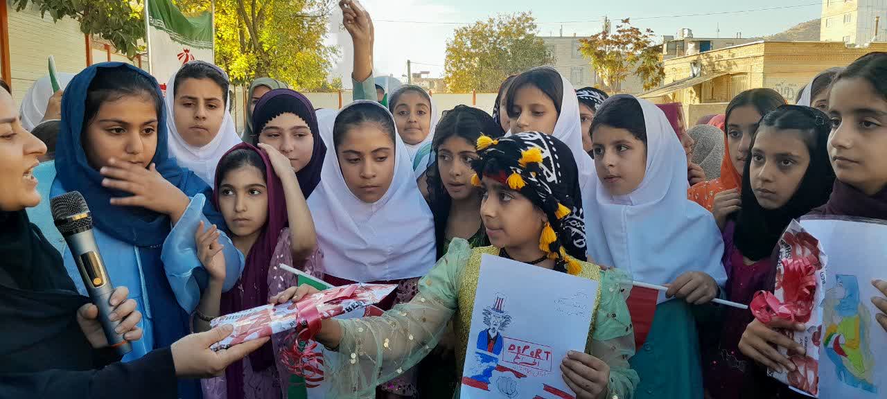 دانشآموزان با سردادن شعارهایی همچون «مرگ بر آمریکا» و «مرگ بر اسرائیل» اعتراض خود را اعلام کردند. همچنین در این مراسم از نقاشیها و طرحهای برتر دانشآموزان درباره سیزدهم آبان تقدیر به عمل آمد و به چهار نفر از برگزیدگان جوایزی اهدا گردید.