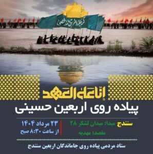 به گزارش روابط عمومی ادارهکل تبلیغات اسلامی استان کردستان، مراسم پیادهروی جاماندگان اربعین حسینی با هدف همنوایی با زائران کربلای معلی و پاسداشت شعائر عاشورایی، روز پنجشنبه ۲۳ مرداد ۱۴۰۴ از ساعت ۸:۳۰ صبح در شهر سنندج برگزار خواهد شد.