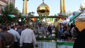 دهها غرفه و موکب خدماتی، فرهنگی و پذیرایی در گوشه و کنار محل جشن برپا بود. هر غرفه بخشی از رنگ و زیبایی این گردهمایی بزرگ را شکل میداد و تجربهای چندجانبه برای بازدیدکنندگان فراهم میکرد. غرفههای پذیرایی با توزیع نذریهای گرم، غذا و نوشیدنی، فضایی صمیمی و پرمحبت ایجاد کرده بودند و بوی خوش غذاها در فضا پخش شده بود.